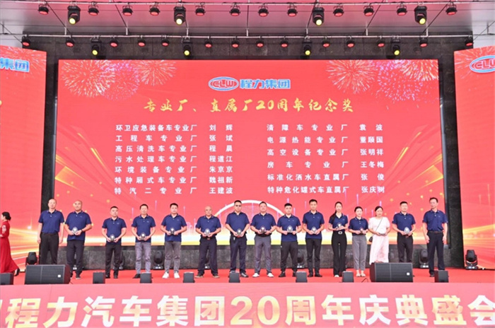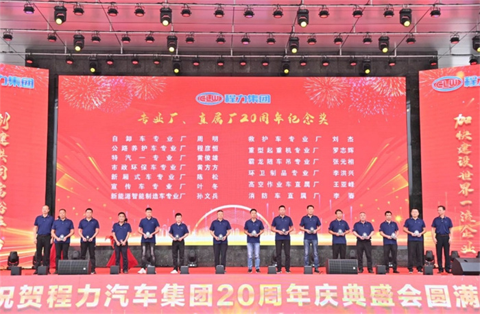篇章一:9月15日上午之“程力二十年,攜手向未來”慶典表彰大會 ![]() ![]() “鑄專汽領軍品牌,建世界一流企業(yè)”;“程力二十年,攜手向未來”,2024年9月15日上午,金秋時節(jié)的炎帝神農(nóng)故里隨州,在程力(曾都)汽車工業(yè)園數(shù)字化智慧工廠文化廣場,陽光明媚碩果累累,鮮花綻放丹桂飄香;來自隨州市、區(qū)的領導嘉賓,全國各大主機廠、汽車零部件上下游供貨商、售后服務站,以及程力直營店、市外聯(lián)營單位的代表,以及程力各生產(chǎn)經(jīng)營單位的負責人、集團公司15年至20年工齡忠誠敬業(yè)員工、光榮退休的元老,共1000余人,歡聚一堂喜氣洋洋,共同參加了集團公司20周年盛大慶典,攜手同行的合作伙伴和友商,紛紛發(fā)來了賀信、賀函,先后發(fā)來賀信、賀電或祝福視頻。 程主席致詞贊揚道:程力人二十載風雨兼程,二十載砥礪奮進,全體員工敢于創(chuàng)新勇立潮頭,心無旁騖專注汽車制造,不忘初心、肩負使命、奮斗不止,程力人是“程力精神”的創(chuàng)造者、弘揚者,是公司發(fā)展的建設者和主人翁;二十年來,程力從無到有、從弱到強,這一發(fā)展壯大的絢麗篇章,記載了程力人為中國專汽之都增光添彩的奮斗歷程;在20年的開拓征程中,程力人群策群力、攻堅克難,打贏了一個又一個攻堅戰(zhàn),在汽車制造和應急裝備領域,深耕沃土,實現(xiàn)了跨越式的高速增長,奠定了專汽領軍地位,豎立了行業(yè)豐碑,程力品牌馳名中外、享譽世界,老一輩程力人為此付出了卓越的貢獻。