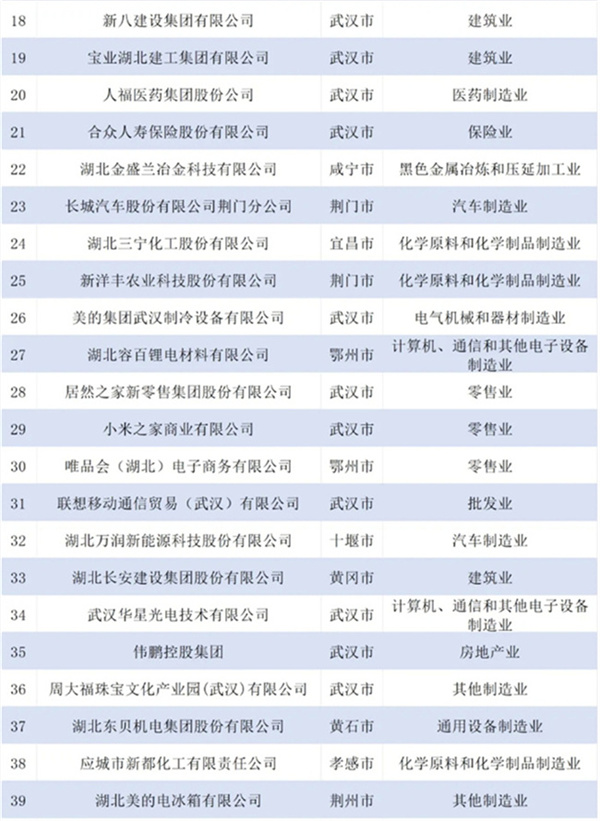 2024湖北民營企業(yè)百強(qiáng)榜單發(fā)布