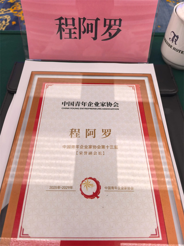 中國青年企業(yè)家協(xié)會授予程力汽車集團董事長程阿羅為中國青年企業(yè)家協(xié)會榮譽副會長