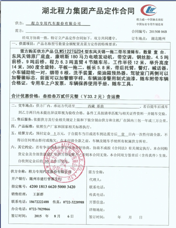 湖北程力專(zhuān)用汽車(chē)銷(xiāo)售合同模板