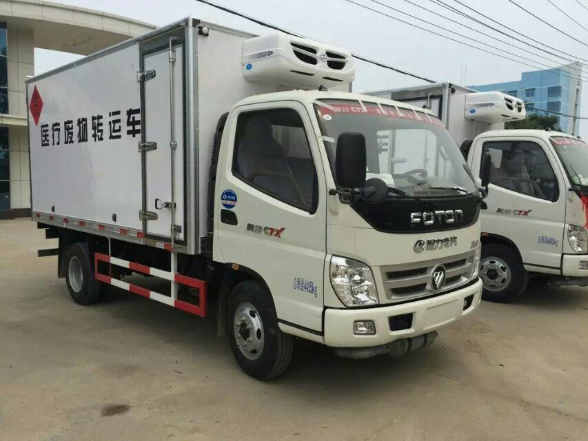 湖北程力東風(fēng)多利卡醫(yī)療廢物轉(zhuǎn)運(yùn)車(chē): 配備東風(fēng)多利卡經(jīng)典1730駕駛室,朝柴100馬力,2噸前橋,3.5噸后橋,萬(wàn)里揚(yáng)5檔變速箱,700鋼絲胎,氣剎,動(dòng)轉(zhuǎn),ABS。車(chē)廂為密閉式結(jié)構(gòu),內(nèi)腔材料為不銹鋼板,防銹、防水耐腐蝕、易清洗和。車(chē)廂內(nèi)部裝有低溫殺毒,紫外線殺毒,噴霧殺毒設(shè)備,可隨時(shí)對(duì)車(chē)廂內(nèi)部進(jìn)行。廂體兩側(cè)設(shè)有桶固定裝置,保證車(chē)輛緊急啟動(dòng)、停車(chē)或事故時(shí)廢棄物收集桶不會(huì)和翻轉(zhuǎn)。 湖北程力福田奧鈴醫(yī)療廢物轉(zhuǎn)運(yùn)車(chē):
