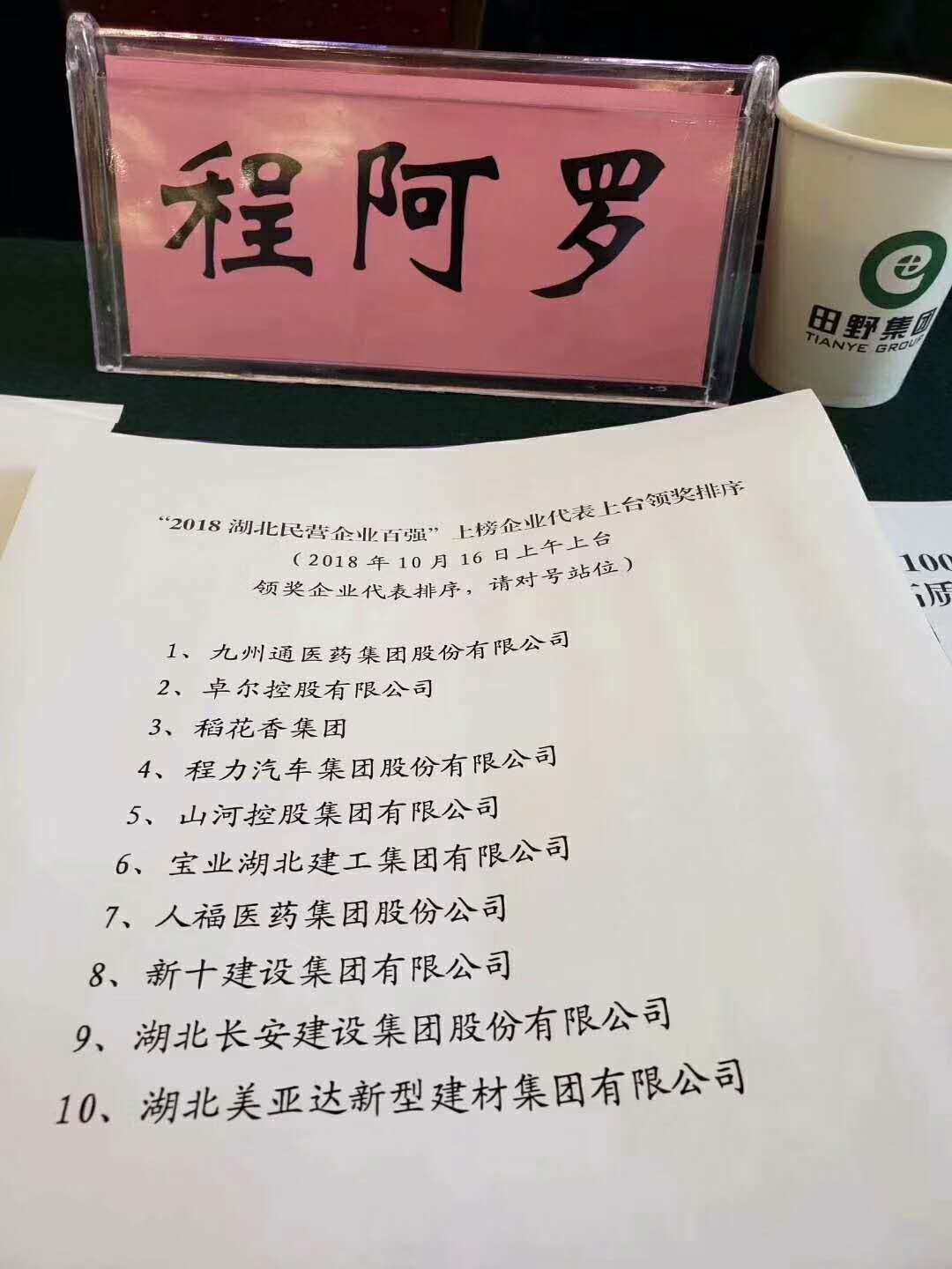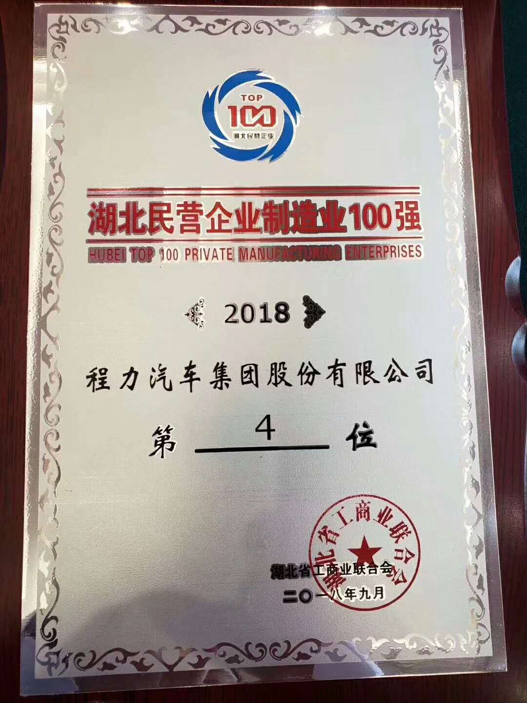 賀湖北程力汽車集團(tuán)榮譽(yù)排名湖北民營(yíng)制造業(yè)第四名