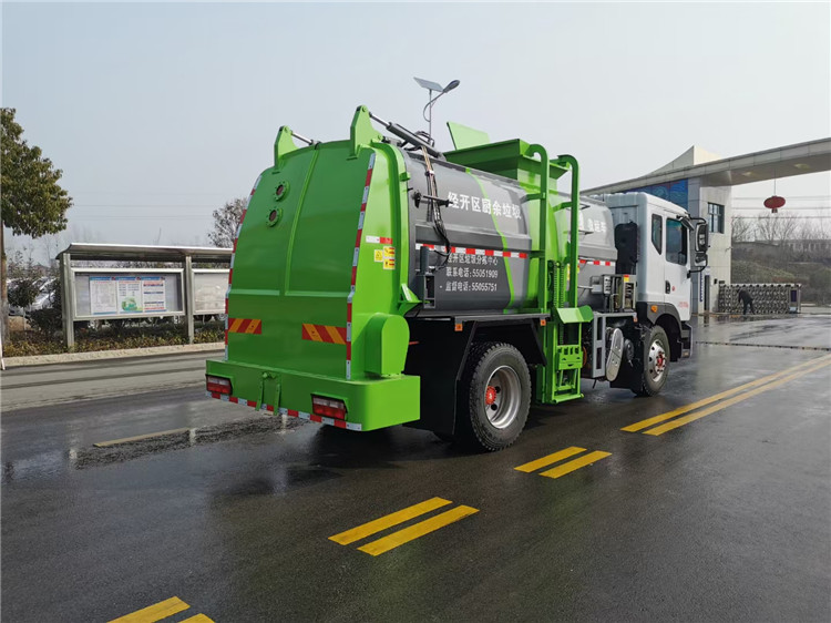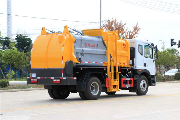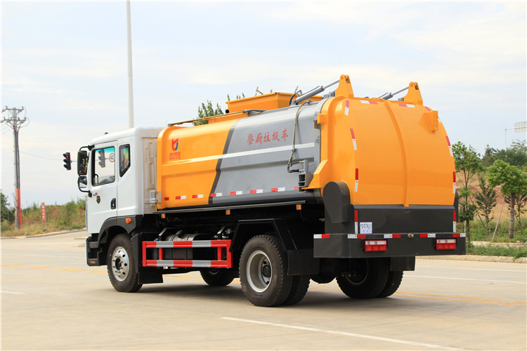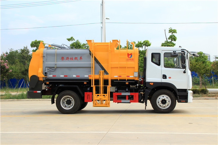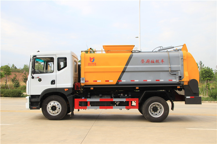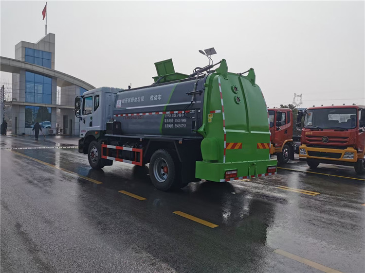 東風(fēng)多利卡D9國(guó)六10方餐廚垃圾車底盤(pán)配置:采用東風(fēng)D9系列新款駕駛室,4500mm軸距,搭載國(guó)六(國(guó)Ⅵ)玉柴200匹馬力/康明斯230柴油發(fā)動(dòng)機(jī),法士特8檔變速箱,9T后橋,10.00R20鋼絲胎,ABS,標(biāo)配電動(dòng)窗、中控鎖、鑰匙、日間行車燈、自動(dòng)落鎖、斷氣剎、定速巡航、瞬時(shí)油耗,科技感十足,駕乘更舒適,GB7258新規(guī)。 東風(fēng)多利卡D9國(guó)六10方餐廚垃圾車上裝配置:罐體容積10方,采用4mm碳鋼制作,圓距形罐體,液壓系統(tǒng),配拉桿式提升機(jī),可掛120/240升垃圾桶,推鏟卸料,具有干濕分離,罐體尾門(mén)液壓打開(kāi)和鎖緊+手動(dòng)鎖緊裝置,罐尾設(shè)液體自流閥,液位窗,后門(mén)液壓開(kāi)啟。用于運(yùn)輸液態(tài)垃圾,其特點(diǎn)操作簡(jiǎn)單,密封性好,無(wú)泄漏,無(wú)異味,常用于餐館的垃圾轉(zhuǎn)運(yùn)處理。 此款環(huán)衛(wèi)垃圾車可加裝配置:1、罐體內(nèi)部固液分離功能(全推推板,不銹鋼泔水分離網(wǎng)板);2、罐內(nèi)加熱功能(用于嚴(yán)寒地帶防止罐內(nèi)餐飲垃圾凍結(jié)凝固,采用柴油燃燒機(jī)加熱,加熱速度快效果好,可設(shè)置高低溫實(shí)現(xiàn)自動(dòng)溫控);3、稱重功能(垃圾桶提升架稱重計(jì)量);4、罐體清洗裝置(加裝高壓泵與高壓水槍);5、吸污功能(利用真空吸污裝置直接將餐飲垃圾吸入罐體)