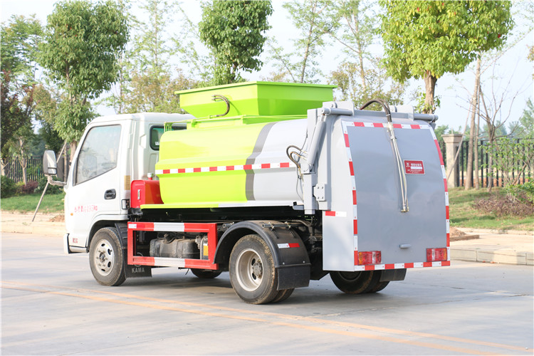 凱馬餐廚垃圾車又稱廚余垃圾車或者泔水車,是鳙魚收集和運輸生活垃圾,食品垃圾(泔水)及城市淤泥的車輛,具有自裝,自卸,固液分離,運輸垃圾車自動化程度高,密封性好,操作簡單,無污水泄露和異味的散發(fā)等特點 國六凱馬藍牌餐廚垃圾車配置:常用整車型號:CLW5040TCAKL6|軸距2800,或者3300濰柴130馬力,容積3立方。固液分離、全推板、加熱裝置可選,實車公告,環(huán)保已下發(fā),上戶無憂 罐體容積3方,采用4mm碳鋼制作,方形罐體,罐體與后蓋上部采用鉸鏈連接,后蓋可利用液壓油缸打開卸料;罐體右側(cè)前部裝有掛桶提升機構裝卸桶裝垃圾,罐體底部安裝液壓油缸實現(xiàn)罐體舉升自卸。后蓋采用液壓開啟、鎖緊。操作方式為室外手動液壓操作。凱馬3方藍牌餐廚垃圾車底盤配置:濰柴發(fā)動機,六檔變速箱,2800軸距,1046后橋,6.50R16鋼絲胎,新款五十鈴1680白色單排可翻轉(zhuǎn)駕駛室 我公司生產(chǎn)的凱馬餐廚垃圾車優(yōu)勢: 其外觀造型美觀大方。垃圾箱橫向截面為圓柱框架、縱向截面為梯形框架,兩側(cè)及頂面均為圓弧造型,美觀大方,裝載能力強。且能實現(xiàn)箱內(nèi)餐廚垃圾油水的初步分離和垃圾減容,并配備有大容量污水箱,垃圾箱與后門總成之間密封性好。垃圾箱與后門總成之間采用特制型橡膠條密封,密封性好,了二次污染。可靠性與安全性。采用電、液聯(lián)合控制,并設置了安全保護開關,保證了各機構動作準確、可靠。發(fā)動機功率輸出自動控制。發(fā)動機功率輸出實現(xiàn)全自動控制,非作業(yè)時,發(fā)動機怠速狀態(tài),作業(yè)時,發(fā)動機自動加速,滿足作業(yè)功率的要求。避免了功率損耗和系統(tǒng)發(fā)熱,耗油降低,經(jīng)濟性好。 機動性強。作業(yè)罐體和作業(yè)平臺利用底盤承載,任何需要對泔水進行處理的地方,只需一個司機一個作業(yè)工人就能隨叫隨到。其機動作業(yè)能力好。 湖北程力國六凱馬3方藍牌餐廚垃圾車程力威牌CLW5040TCAKL6型餐廚垃圾車CLW5040TCAK6型餐廚垃圾車圖片價格: