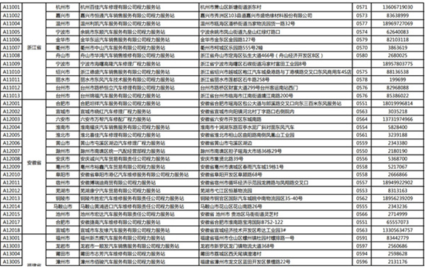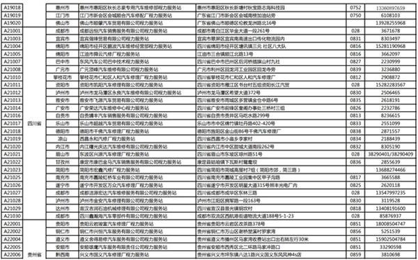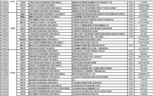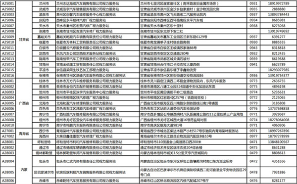 程力專用汽車股份有限公司(程力威)牌專用汽車全國服務站名錄