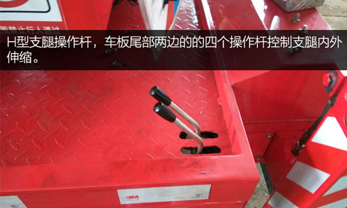 H型支腿操作桿,車板尾部兩邊的的四個操作桿控制支腿內(nèi)外伸縮。