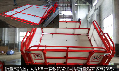 折疊式貨藍,可以伸開裝載貨物也可以折疊起來裝載貨物。搬家時,有時候東西特別多,放不下的時候就可以直接把貨藍打開使用,貨藍和云梯的單次承載重量400公斤以內(nèi),貨藍只能載貨嚴禁站人。