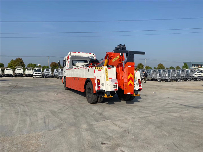 東風(fēng)天錦單橋拖吊聯(lián)體一拖一清障車配置: 采用康明斯210馬力,八檔箱,斷氣剎,空調(diào),ABS,電動(dòng)玻璃,中控門鎖,900R20鋼絲胎。 10噸上裝,聯(lián)體式上裝,二節(jié)式六邊型吊臂,三節(jié)托臂,分體式車廂,雙側(cè)聯(lián)動(dòng)操作裝置,兩個(gè)八噸液壓卷揚(yáng),三十五米鋼絲繩,直徑16MM,配四套鋼叉,一套拖叉套,一套鋼板吊耳拖叉,一套抱胎裝置,輔助燈一套,輔助氣管總成一套。 整車出具:底盤合格證、整車合格證、全國統(tǒng)一機(jī)動(dòng)車發(fā)票、隨車工具、車輛質(zhì)保手冊(cè)、全國服務(wù)站點(diǎn)目錄等。 湖北程力國六東風(fēng)天錦托吊連體清障車程力威牌CLW5188TQZD6型清障車多方位圖片價(jià)格: