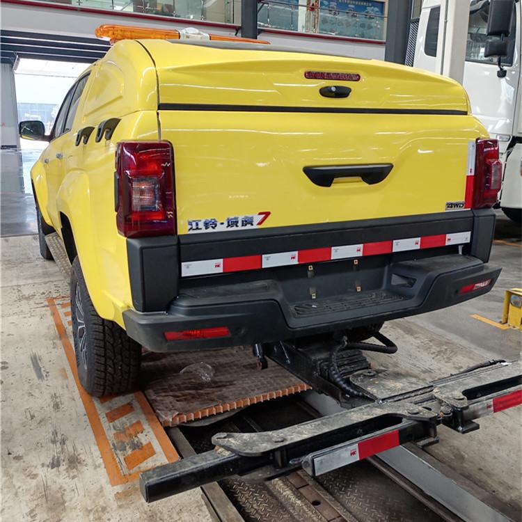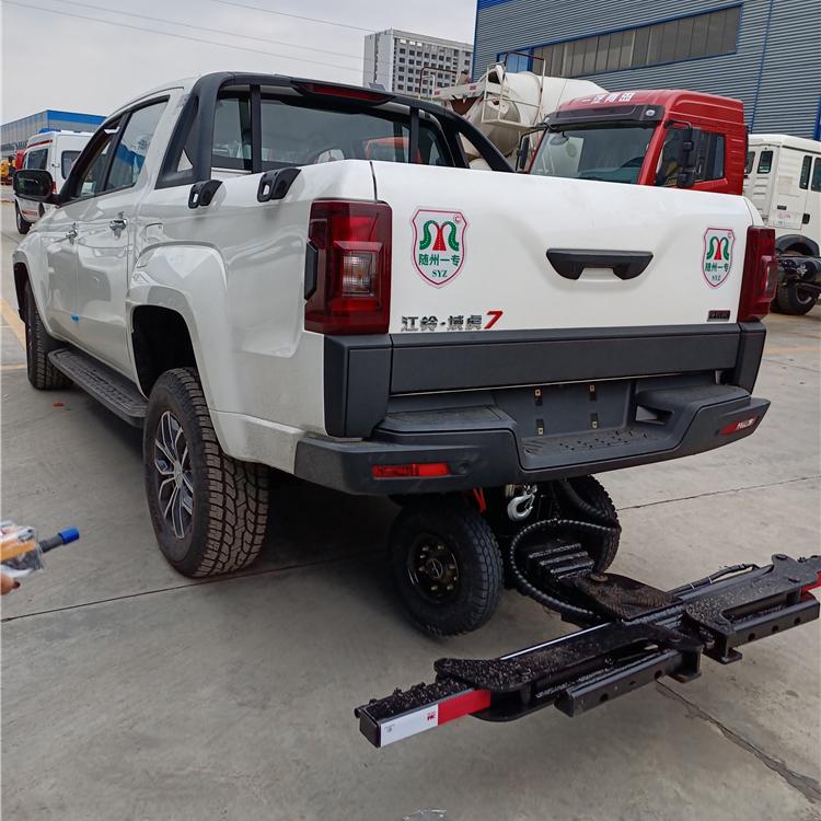 湖北程力國六江鈴域虎7皮卡清障車四驅(qū)皮卡拖車程力牌CL5030TQZ6ZK型清障車廠家配置: 地庫救援皮卡清障車,此款車型有公告,可正常上戶。該車采用江鈴域虎皮卡底盤改裝,全自動夾緊裝置,因?yàn)檐嚿矶、高度低,特別適合地下車庫的車輛救援。 江鈴域虎7皮卡手動擋皮卡清障車配置:選用國六域虎7皮卡底盤,國六B級排放標(biāo)準(zhǔn)福特發(fā)動機(jī)141馬力,6擋變速箱,中冷增壓柴油發(fā)動機(jī),分時(shí)高低速四驅(qū),3085軸距,冷暖空調(diào),真皮座椅,原廠倒車影響,ABS,265,70R16真空越野胎,多功能方向盤,電動玻璃遙控一鍵啟動功能。前后碟剎,鋁合金輪轂,腳踏板2.0T排量,貨箱噴涂。 江鈴域虎7皮卡手動擋皮卡清障車上裝配我廠最新款 第五代專利 產(chǎn)品萬向輔助輪,配無線遙控器真正的全自動抱胎,備用線按鈕,鋼板加強(qiáng),3噸電動液壓單元,雙油缸托3節(jié)伸縮托臂,進(jìn)口部件,進(jìn)口油封,全自動抱胎,贈萬向輔助小車2個(gè),4條綁帶,贈送前配重。 第五代上裝~帶萬向輔助輪后托臂,依據(jù)力學(xué)原理,優(yōu)化設(shè)計(jì),根據(jù)拖車的重量遙控調(diào)節(jié)輔助輪的相應(yīng)高度,車速輕松跑;規(guī)避了已經(jīng)淘汰的第三代國定輔助輪拖臂因不能調(diào)節(jié)摩擦力大速度受限帶來的一系列問題(限速、費(fèi)油、摩擦大引起的爆胎。 湖北程力國六江鈴域虎7皮卡清障車四驅(qū)皮卡拖車程力牌CL5030TQZ6ZK型清障車圖片價(jià)格: