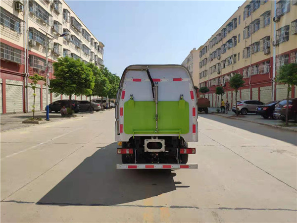 湖北程力國六長安小型掃路車: 2. 采用副發(fā)動機專門驅動風機和液壓系統(tǒng),保證行駛過程中能繼續(xù)工作,保證清掃過程的連續(xù)性。 3. 采用“中置四掃盤+噴霧降塵裝置+中心隔板+后置吸嘴”的結構布局,讓清掃過程中砂石不在飛濺揚塵,此布局便于清掃裝置與吸盤的調整與維護,轉場作業(yè)時整車通過性好。 4. 副發(fā)動機與風機之間的傳動設置設有自動離合器,可保證副發(fā)動機空載啟動和停機時與風機的自動脫離,降低了對副發(fā)動機的沖擊,提高了副發(fā)動機的工作可靠性和使用壽命。 5. 掃盤有遇障礙自動避讓保護功能和自動復位功能,遇到障礙自動回縮,越過障礙自動回位。 6. 掃盤轉速可根據各種不同的清掃工況來調整轉速,能保證在各種污染狀況下都有良好的清掃效果 7. 采用先進,高效的專用風機和可隨路面自動找平的全浮動式吸嘴,清掃效果好,使用壽命長 湖北程力國六長安小型掃路車配置: 底盤型號:SC1031XND64A 發(fā)動機型號:DK15C 發(fā)動機功率:82KW 外形尺寸:4810×1850×2150mm 工作寬度:2.2M 吸入粒度:φ120mm。 水箱容積:0.5m3 垃圾箱容積:1.5m3 最大作業(yè)能力:13000㎡/h-25000㎡/h 上裝標配:帶4個掃盤、云內42KW馬力副發(fā)動機、三洋馬達、施耐德控制開關、海普瑞斯電磁閥組、無級變速自動離合器、免維護離心式自動風機、不銹鋼垃圾箱、上海新西山電子水泵,尾部LED箭頭指示燈、手動泵應急系統(tǒng)、垃圾舉升自卸功能。 上裝主要配置展示